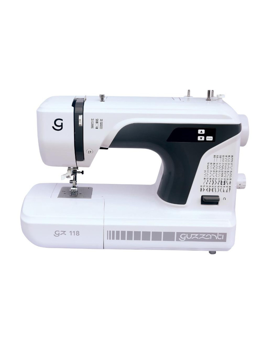 Elektronický šijací stroj Guzzanti GZ-118 • LED displej pre jednoduché nastavenie stehu • 50 programov šitia • vertikálny kyvný chápač pre profesionálne presné šitie • plynule nastaviteľná šírka (0 – 5 mm) a dĺžka (0 – 4 mm) stehu • automatický navliekač nite • vstavaný odrezávač nite • ľahká výmena prít...