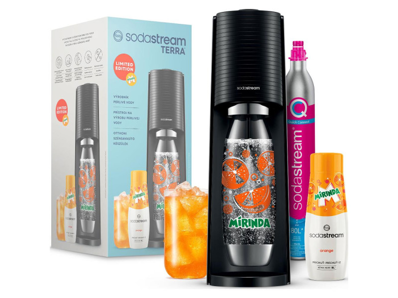 Výrobník sódy SodaStream TERRA Black MIRINDA Mpack Limitovaná edícia TERRA Black Mirinda Megapack - osvieženie s ikonickou príchuťou! Hravý dizajn, ikonická chuť a prémiové prevedenie! Výrobník perlivej vody SodaStream TERRA teraz prichádza v limitovanej edícii Mirinda, ktorá prináša nielen osviežujúcu ...