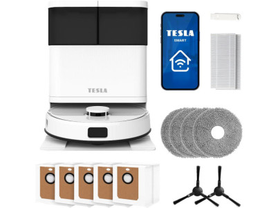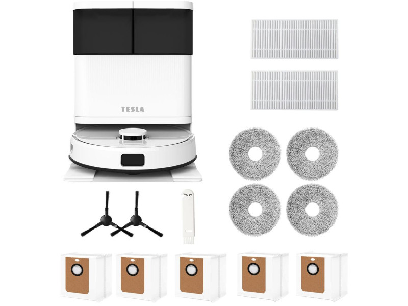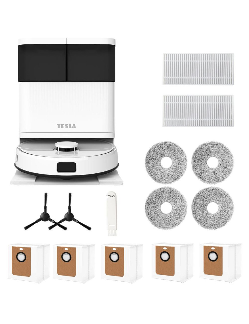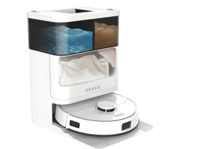 Robotický vysávač TESLA RoboStar iQ900 Ultra Laserový robotický vysávač 3v1 3 v 1, vysáva, čistí podlahu rotačnými mopmi a nečistoty odsaje do stanice Automatická čistiaca a nabíjacia stanica Možnosť voľby medzi vysávaním, vytieraním alebo kombinovaným upratovaním Inovatívne výsuvné rameno rotačného mop...