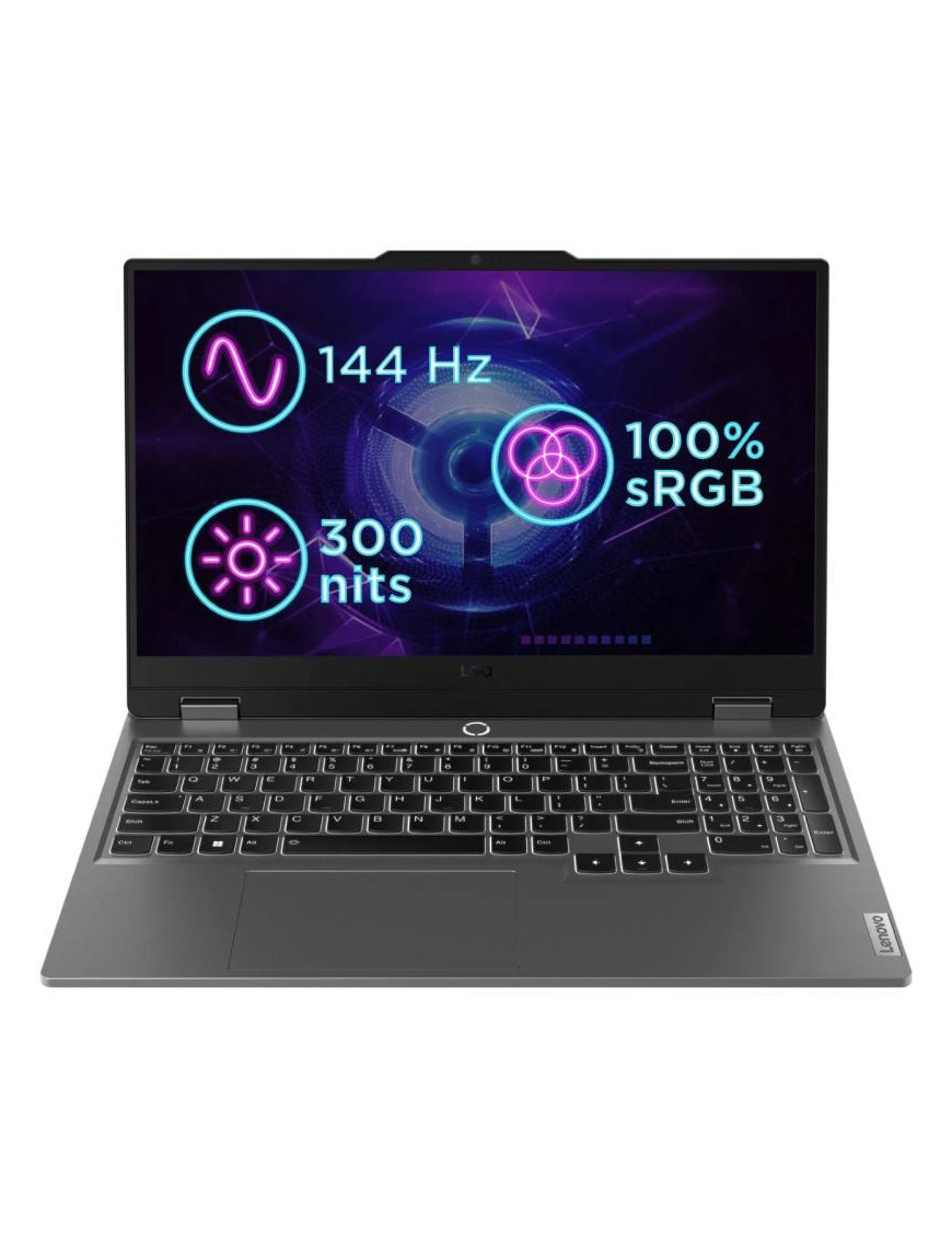 LENOVO LOQ (15IAX9) Herný notebook - 15.6" 144Hz IPS displej (1920x1080 bodov), 8jadrový procesor Intel Core i5-12450HX, 8C (4P + 4E) / 12T, P-core up to 4.4GHz, E-core up to 3.1GHz, 12MB, pamäť 1x 16GB SO-DIMM DDR5-4800, grafika NVIDIA GeForce RTX 2050 4GB GDDR6, disk 512 GB SSD M.2 2242 PCIe 4.0x4 NVMe, GLAN, Wi-Fi 6 ax, Bluetooth 5.2, USB (2x USB 2.0, 1x USB Type C - 3.2 Gen1), HDMI (2.1), RJ45, 720p kamera, čítačka pamäťových kariet, podsvietená klávesnica (biele svetlo), 57Wh batéria, 135W