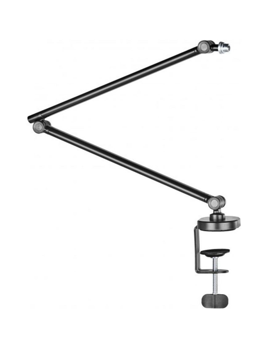 TECHNICKÁ ŠPECIFIKÁCIA: Typ položky: Stojan na mikrofón Povrchová úprava: Práškové lakovanie Rozmery (mm): 95x440x545 Podporuje: Podpora závitu mikrofónu - 3/8'', 5/8'' Inštalácia: Svorka Materiál: oceľ/plast/hliník Farba: Čierna/Sivá Maximálne zaťaženie (kg): 1 Výška (mm): 0-812 (0''-...