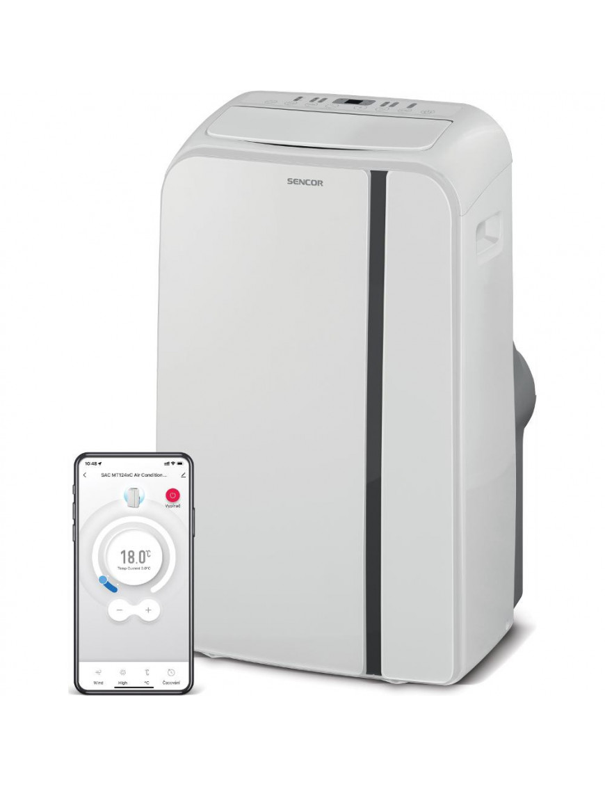 Mobilná klimatizácia Wi-Fi Výkon chladenia: 12 000 BTU/h Napájanie: 220 - 240 V - /50 Hz Príkon: 1450 W /1350 W Typ a náplň chladiva: 8,0 A / 5,9 A Kapatita odvlhčovania: 84 l/deň Kapacita vstavaného zásobníka kondenzátu: 1l Typ a náplň chladiva: R290 / 210 g / GWP 3 Hlučnosť: 63 dB(A) 4 reži...