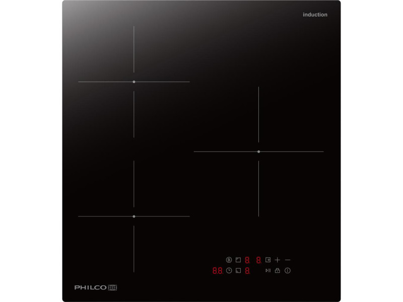 Varná doska Philco PHD 450 E Typ indukčný Materiál pl. dosky tvrdené sklo Počet platničiek 3 Príkon 6,10 kW Ovládanie dotykové Detská poistka Časový spínač zón Ukazovateľ zvyškového tepla Booster Bezp. vypínanie Farba čierna Rozmery (VxŠxH) 5,8 x 45 x 48,8 cm
