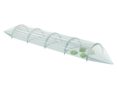 Fólia je vybavená hliníkovými očkami. Pomocou nich upevníte fóliový skleník k zemi. Chráni rastliny pred dažďom a vetrom. Vďaka priehľadnej fólii na svoju úrodu dobre vidíte a ľahko skontrolujete, ako sa jej darí a kedy je pripravená na zber.