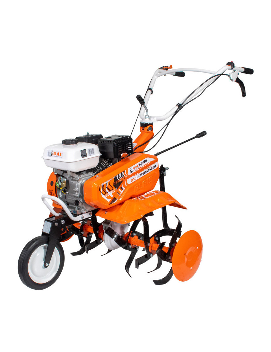 Poloprofesionálny motorový kultivátor DAC 6500K má širokú škálu príslušenstva vďaka výkonu vyvinutému prevodovkou. Motorový kultivátor umožňuje pripojenie širokej škály príslušenstva, ako napríklad: pluh na jednu radlicu, vertikutátor, vyorávač zemiakov, kultivátor, radlica na sneh, bubnový systém kosenia, sejačka, kovové alebo gumené kolesá, príves s nosnosťou až 500 kg. Všetko dostupné