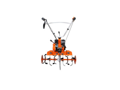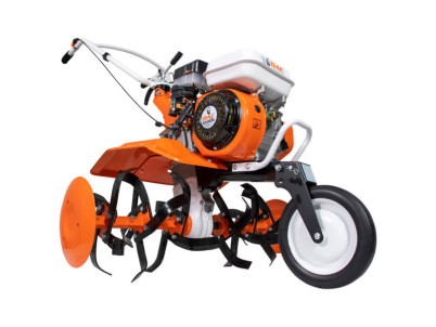 Hoci váži 80 kg, ľahko sa s ním manipuluje vďaka nastaviteľným kovovým rohom a gumeným rukovätiam, ktoré sú určené na tlmenie vibrácií generovaných kultivátorom.