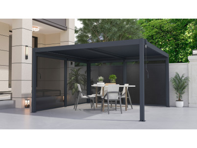 Bočná markíza je praktickým doplnkom pergoly Austin a poskytuje ochranu pred vetrom, nízkym slnkom aj nežiaducimi pohľadmi. Vďaka rolovaciemu mechanizmu si ľahko nastavíte potrebnú úroveň krytia a vytvoríte si príjemné prostredie a súkromie.