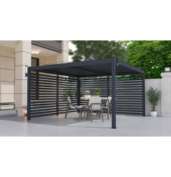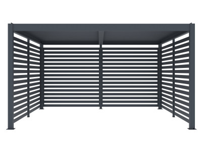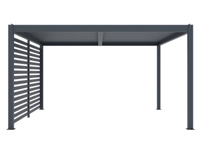 Stena je pevná, bez možnosti naklápania lamiel – má tak väčšiu stabilitu a dodáva účinnú ochranu po celý rok. Elegantný dizajn v antracitovom prevedení skvele doplní pergolu a prispôsobí sa rôznym štýlom vonkajších priestorov. Inštalácia je jednoduchá a prispôsobená presne na rozmer pergoly Austin.
