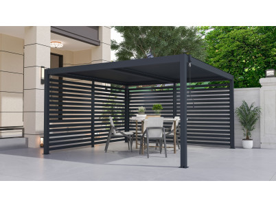 Fixná lamelová stena je praktickým doplnkom pergoly Austin. Zaisťuje súkromie, väčšiu ochranu pred vetrom, dažďom aj slnkom a má moderný vzhľad. Konštrukcia je vyrobená z kvalitného hliníka, ktorý je odolný voči poveternostným vplyvom a nevyžaduje zložitú údržbu.