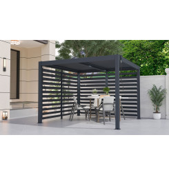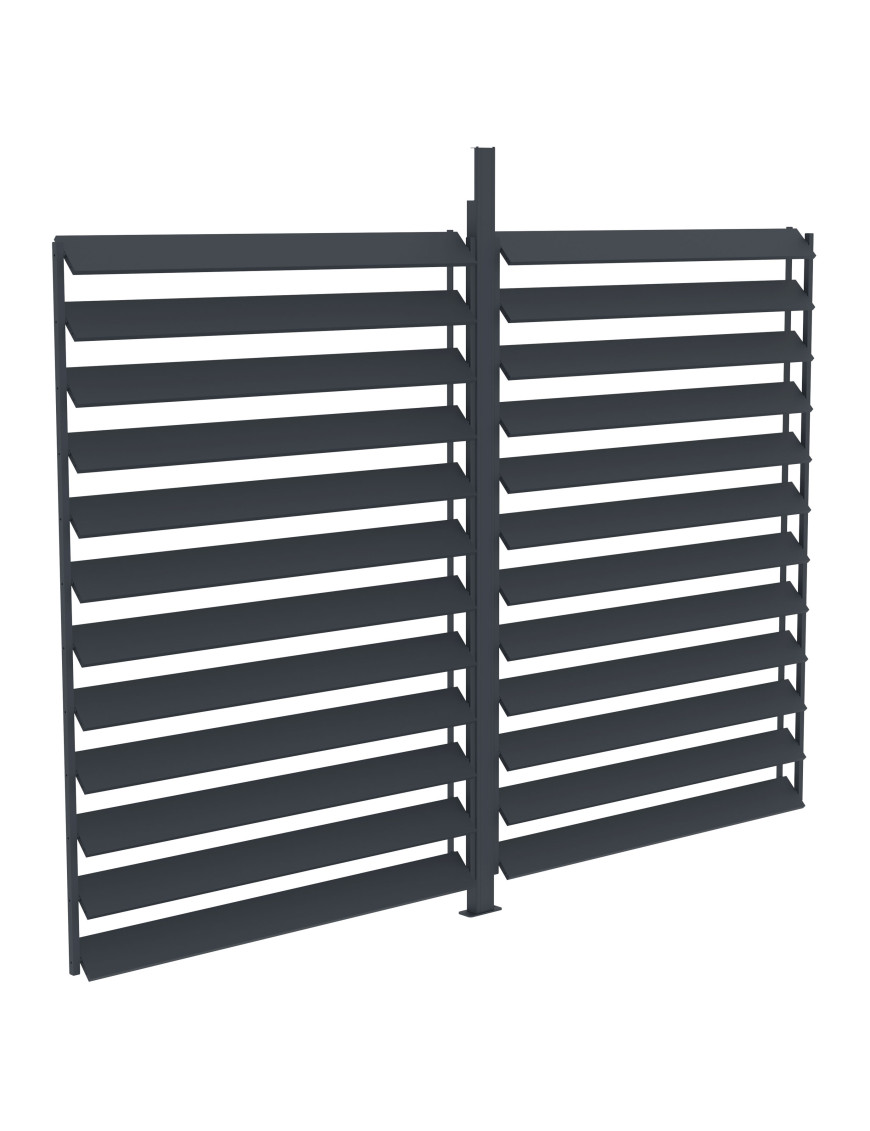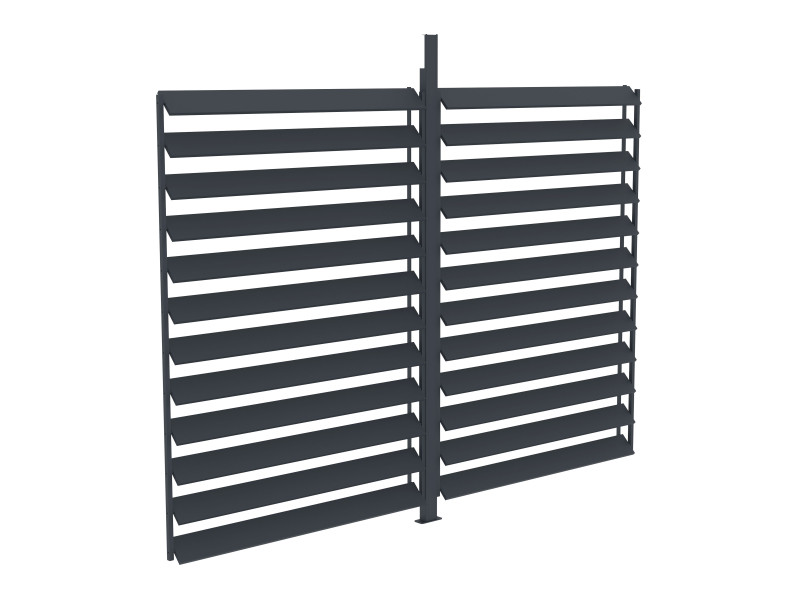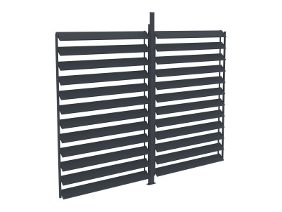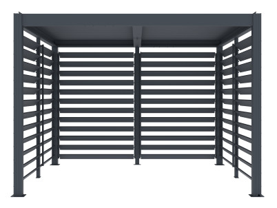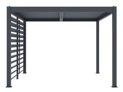 Bočná stena s otočnými pozinkovanými lamelami pre väčšie súkromie aj ochranu pred vetrom, dažďom či slnkom. Stabilná konštrukcia z kvalitného hliníka, jednoduchá inštalácia.