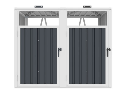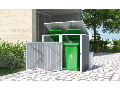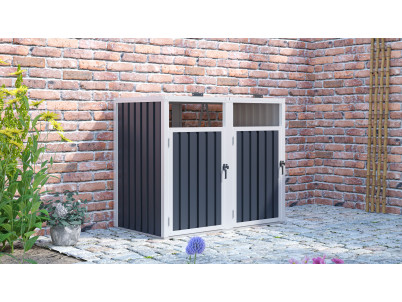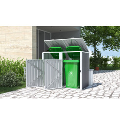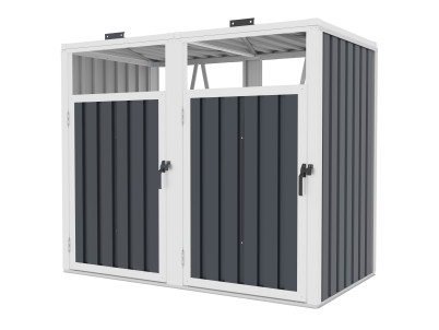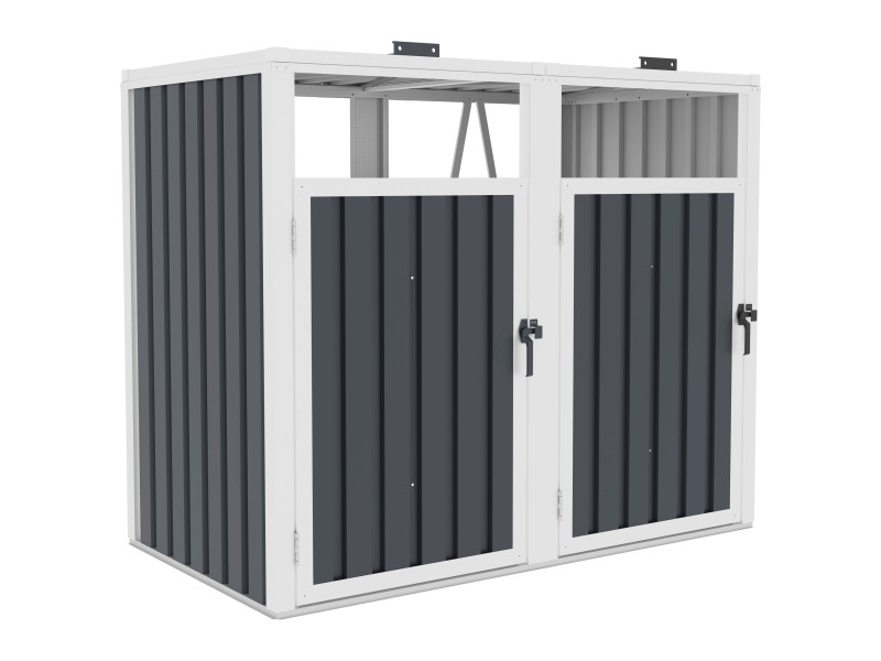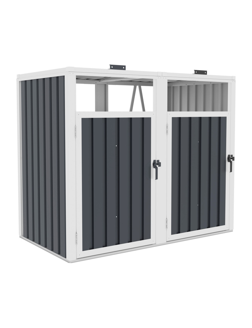 Štýlový prístrešok z pozinkovanej ocele – pre 2 popolnice s objemom až 240 l, odolný voči poveternostným vplyvom, jednoduchá montáž, moderný antracitový dizajn, praktické otváranie zhora aj z čela, poistka proti samovoľnému otvoreniu.
