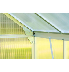 Skleník Strend Pro Greenhouse by nemal chýbať vo vašej záhrade. Má veľmi dobré tepelnoizolačné vlastnosti, čím ochráni rastliny pred jarnými prízemnými mrazíkmi a výrazne zvýši vaše pestovateľské úspechy. Skleník disponuje stabilnou a pevnou oceľovou základňou. Konštrukcia je z hliníkového rámu s hrúbkou 0.8 mm a materiál pareniska je polykarbonát s hrúbkou 6 mm, ktorý je na vonkajšej strane UV stabilizovaný, čím zabezpečuje dlhšiu životnosť a ochranu proti slnečnému žiareniu.