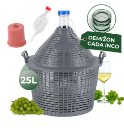 Demižón Strend Pro Cada Inco slúži na uskladnenie tekutín (víno, destiláty). Disponuje 2 úchopmi, je vyrobený zo skla a je vsadený do plastovej ochrany. Jeho objem je 25 litrov a jeho rozmery sú 520x415/330 mm. Zátka nie je súčasťou demižónu.Priemer hrdla 55 mm.