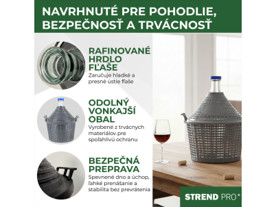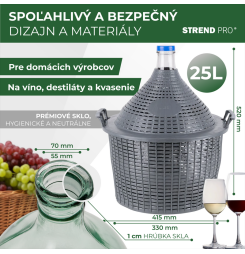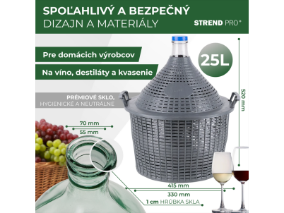 Demižón Strend Pro Cada Inco, 25 lit. sklenený, demižón na víno a pálenku, plastový kryt