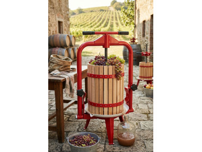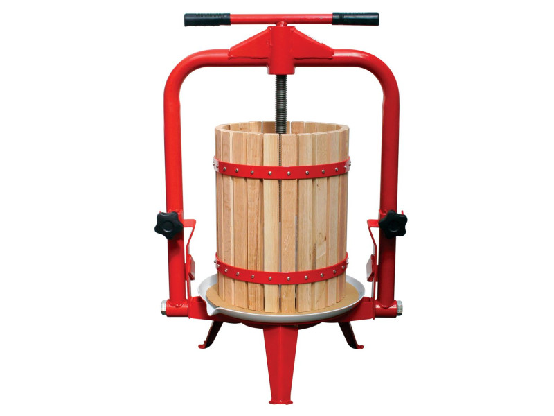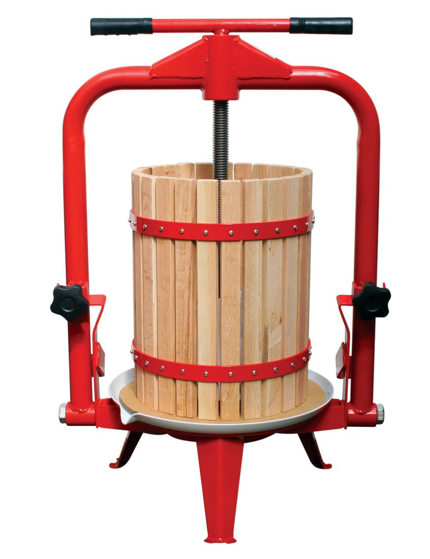 - Rámový lis je určený na vytláčanie šťavy z dopredu pripraveného ovocia (rozdrobené a macerované ovocie s dodatkom pektoenzýmu, prípadne po vstupnom kvasení). - Je vynikajúci na tvrdé aj mäkké ovocie, napr. na jablká, hrozno, slivky, višne, ríbezle a veľa iných druhov ovocia. TECHNICKÉ PARAMETRE: - Ovládanie: tlak skrutkou - Materiál: drevo (červený americký dub) - Objem: 12 l - Rozmery: 540 x 375 x 690/1010 mm