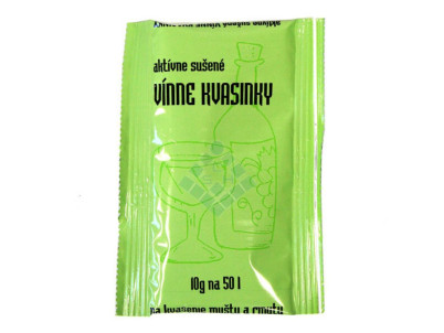 10 g kvasiniek je určených na 50 L muštu, rmutu.