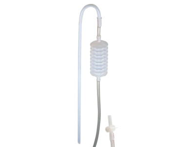 Prečerpávač na víno, medovinu a iné tekutiny s pumpičkou s veľkým uzatvárateľným ventilom. Parametre: dĺžka ihly ventilu 7 cm vonkajší Q ihly ventilu 1,5 cm dĺžka hadice od ventilu po koleno 130 cm dĺžka hadice od kolena po nasávací otvor 80 cm hadica s Q 1,6 cm