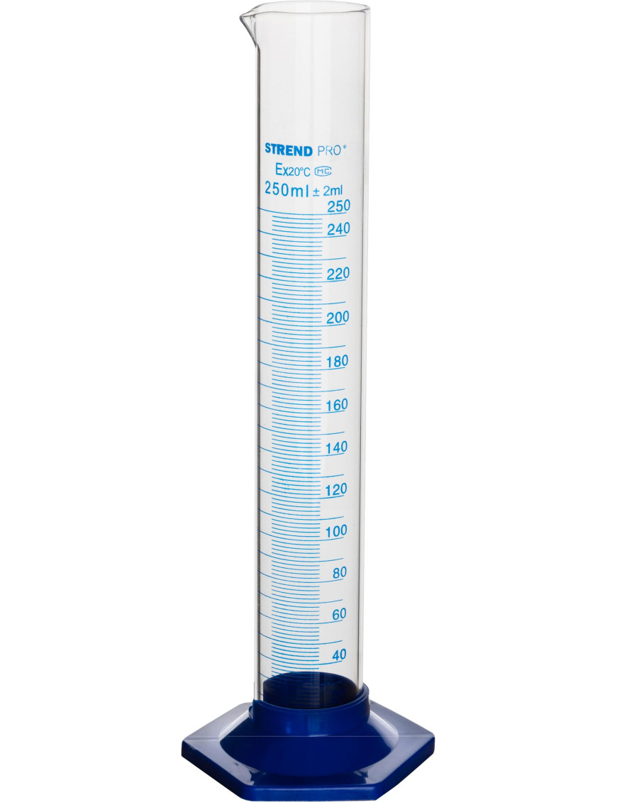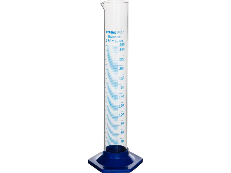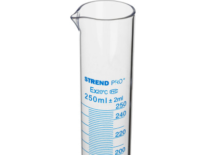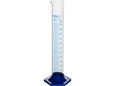 Odmerný sklenený valec slúži na meranie objemu kvapalín. Odmerka do 250 ml.