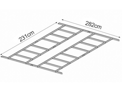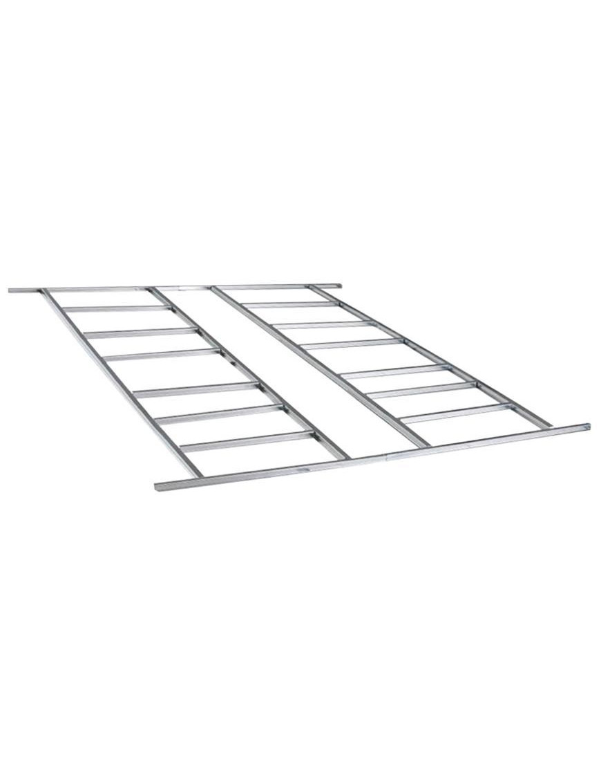 Podlahová konštrukcia vhodná pre záhradný domček. Slúži ako podklad pre podlahovú krytinu. Poskytuje stabilitu a pevnosť tak, aby domček stál rovnomerne a nehýbal sa. Vďaka podlahovej konštrukcii sa voda nedostane dovnútra a neznehodnotí podlahu ani vybavenie. Rozmery: 231x282 cm.