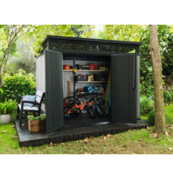Premýšľate, ako rozšíriť svoj úložný priestor? Nemáte kam uschovať záhradné náčinie? So záhradným domčekom Keter Artisan 9x7 vyriešite svoj problém. Hodí sa totiž na skladovanie všetkého záhradného náradia, kosačky, hračiek, grilu, bicykla alebo dokonca záhradného nábytku.