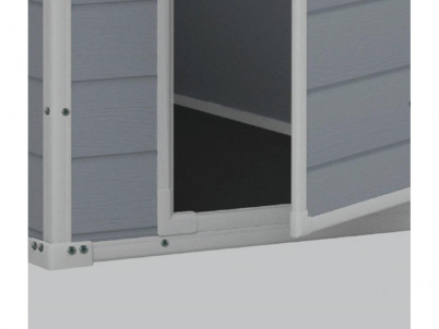 Záhradný domček na skladovanie záhradného i dielenského náradia, športového náčinia a ďalšieho vybavenia, sedlová strecha vydrží zaťaženie až do 75 kg/m2, podlahový panel s výdržou až 150 kg/m2, 16mm dvojitej steny, ventilačný systém. Tmavosivá farba.