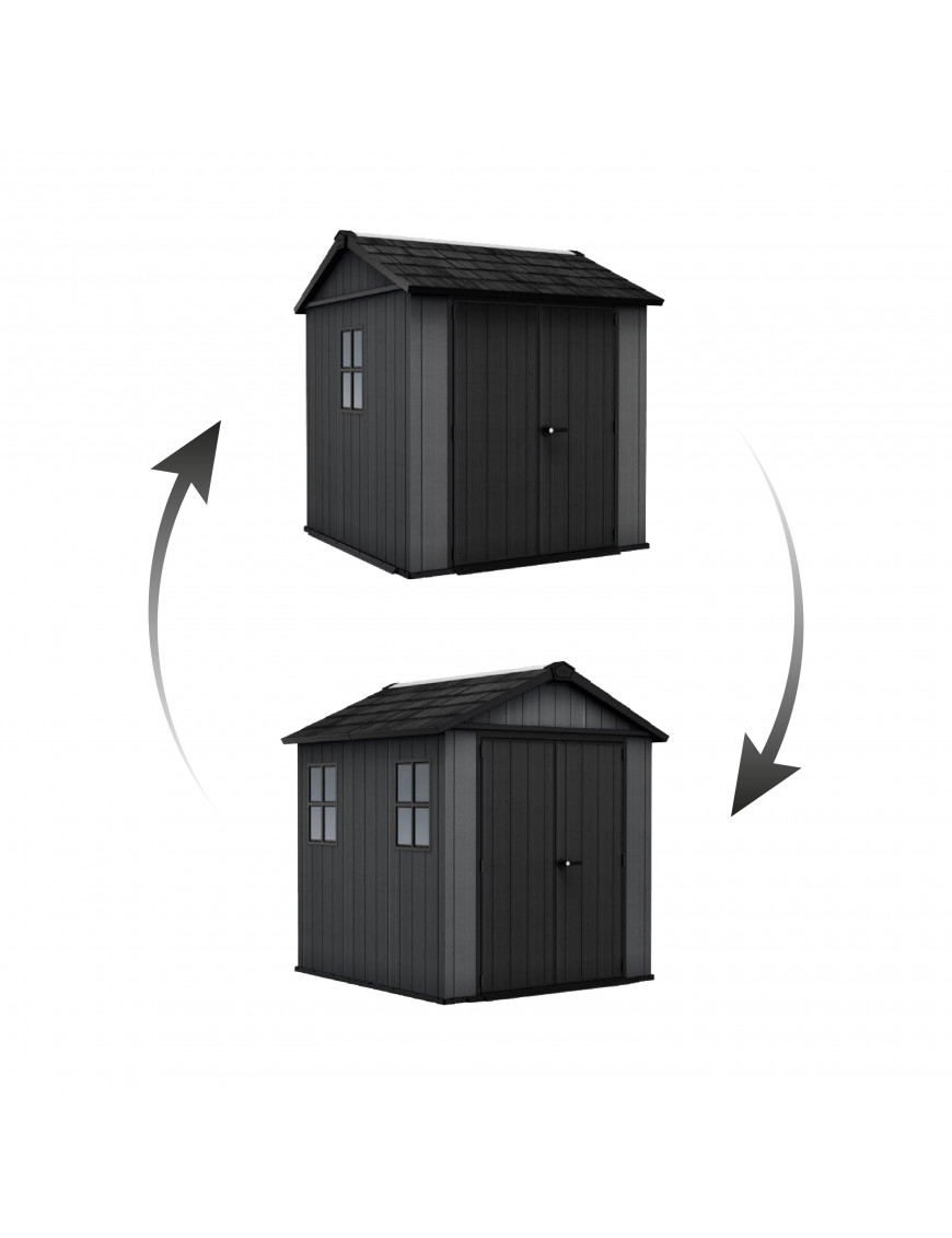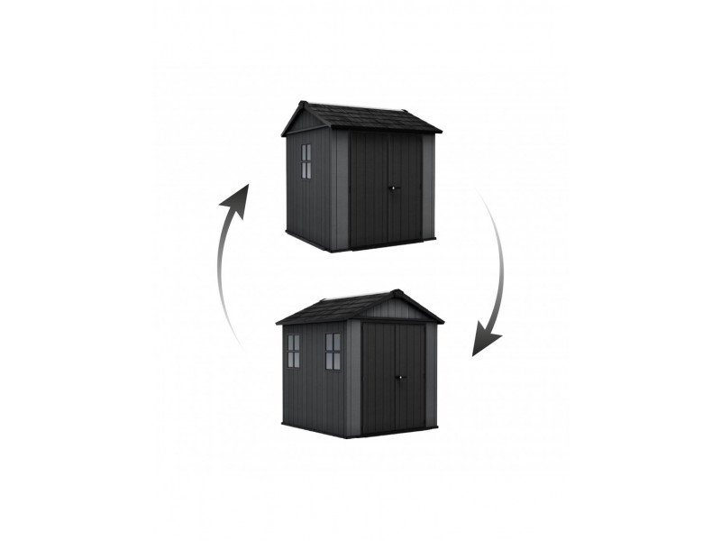 Domek sestavíte 2 různými způsoby podle svých vlastních představ. Záleží jen na vás, na jakou stranu umístíte dveře a okna. Do interiéru navíc snadno namontujete skříně, knihovny nebo police na nářadí. Tím rozšíříte úložný prostor zahradního domku.