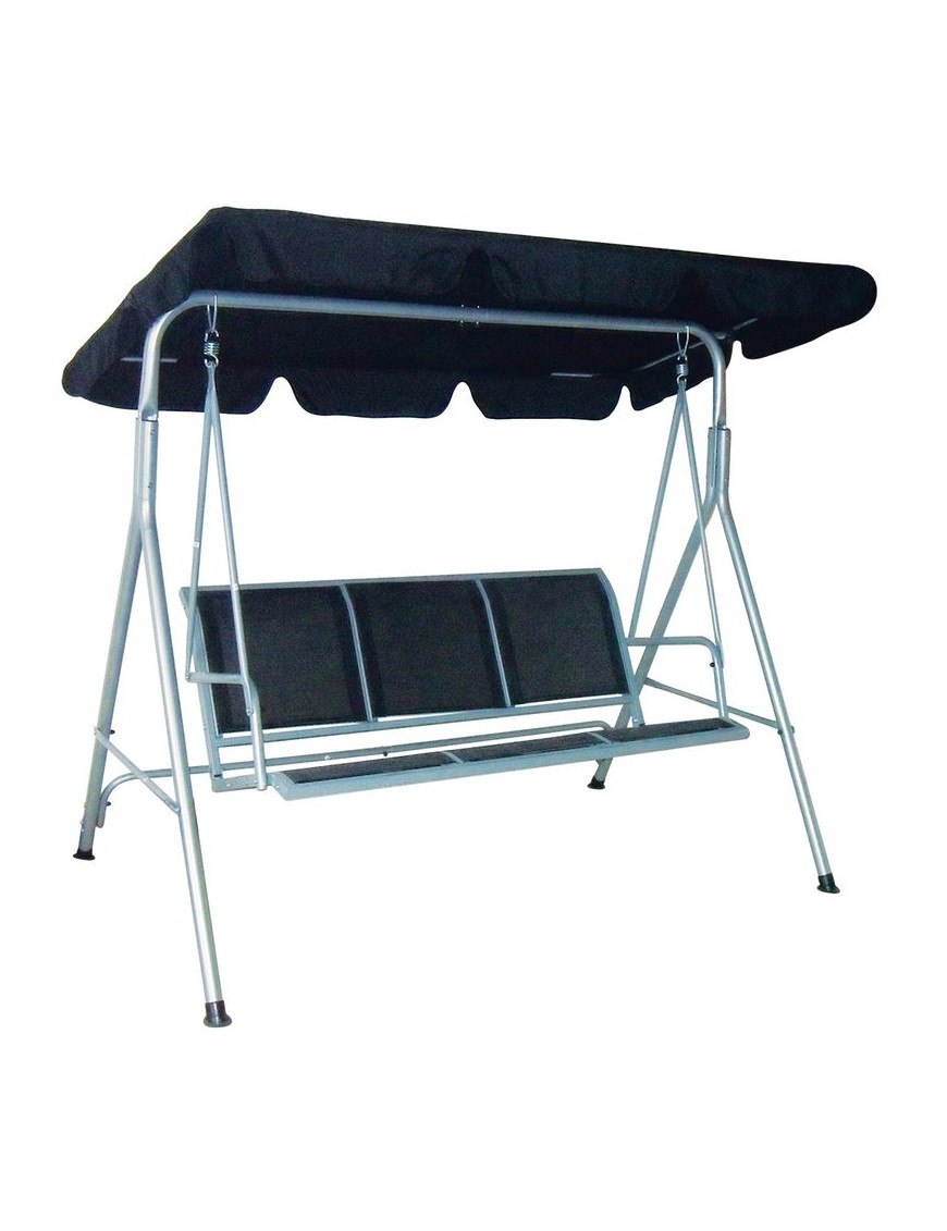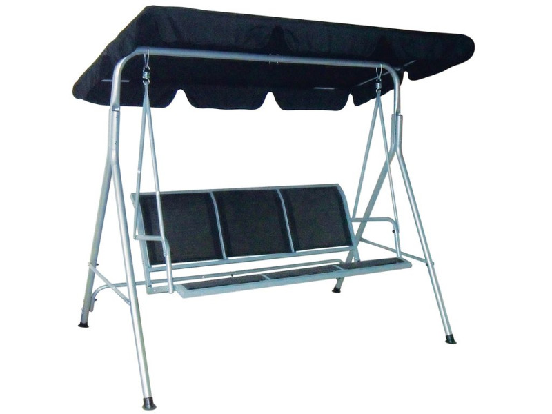 Hojdačka je praktickým doplnkom pre strávenie príjemných chvíľ na čerstvom vzudchu v záhrade. Hojdačka je zavesená na príslušnej kovovej konštrukcii, vďaka ktorej je stabilná a pevná. Rozmery sú 175 x 110 x 155 cm a jej nosnosť je 150 kg, čím umožňuje miesto na sedenie pre troch ľudí. Časť na sedenie a operanie je polyesterová, rovnako ako vrchná strecha. Hojdačka je v kombinácii čiernej a šedej farby. Sklon strechy je možné manuálne si nastaviť.
