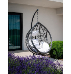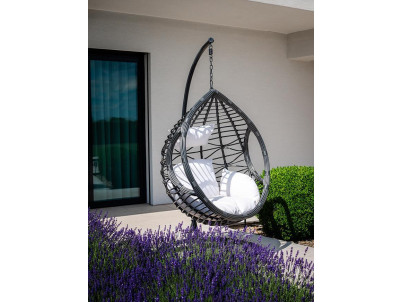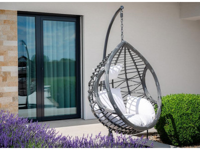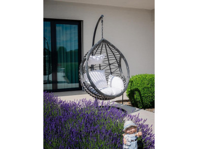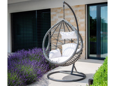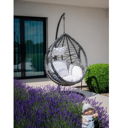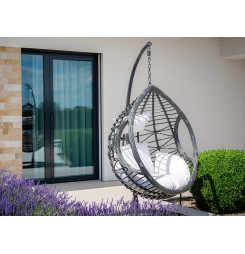 Ratanové hojdacie kreslo je krásnym a štýlovým doplnok do každej domácnosti. Kreslo je vďaka spodnej konštrukcii možné umiestniť do vnútorných, rovnako ako do vonkajších priestorov. Kreslo má okrúhly tvar. Stabilitu celej hojdačky zabezpečuje kovová konštrukcia šedej farby, spolu s polyratanovým sedacím priestorom. Vďaka hĺbke sedacieho priestoru vám hojdačka vytvára malý súkromný priestor. Nosnosť hojdačky je 150 kg. Rozmery samotného hojdacieho kresla, zaveseného na konštrukcii, sú 120 x 105 x 75 cm. Celková výška je 200 cm. Pre dokonalý pocit pohodlia a komfortu su súčasťou balenia bavlnené vankúše a poduška vo farbe ivory. Konštrukciu je potrebné umiestniť na rovný povrch.