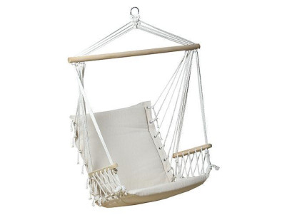 Bavlnené závesné prírodné kreslo je možné využiť vo vnútorných ale i vonkajších priestoroch. Kreslo je potrebné zavesiť na predom navŕtaný hák. Nosnosť je 150 kg a rozmery kresla sú 100 x 50 cm. Bavlnená sedacia časť poskytuje dostatočnú oporu a pohodlie.