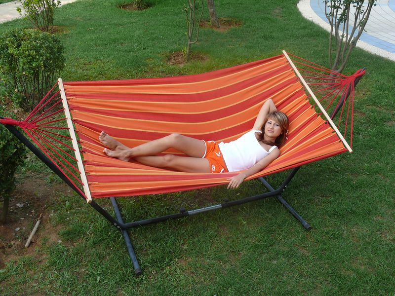 Sieť je určená pre hojdanie a je vyrobená z bavlneného plátna. Má zaujímavú modro-červeno-bielu farebnú kombináciu. Je skvelým prostriedkom pre oddych. Nosnosť siete je 120 kg a jej rozmery sú 200 x 150 cm. Sieť je spevnená drevenými časťami na oboch koncoch. Sieť je potrebné bezpečne zavesiť na stojan určený pre hojdacie plátna.