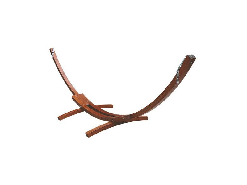 Drevený stojan na hojdaciu sieť je krásny a funkčný doplnok do vašej záhrady. Hlavná konštrukcia je polkruhového tvaru a je vyrobená z pevného dreva. Plachtu hojdacej siete je potrebné upevniť na retiazky vysiace na oboch koncoch stojanu. Nosnosť je až 200 kg. Rozmery stojanu sú 410 x 120 x 130 cm. Stojan nie je možné zložiť. Počas zimného obdobia je vhodné stojan uložiť do vnútorných priestorov, čím ho budete chrániť pred poškodením a navlhnutím od dažďa alebo snehu.