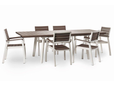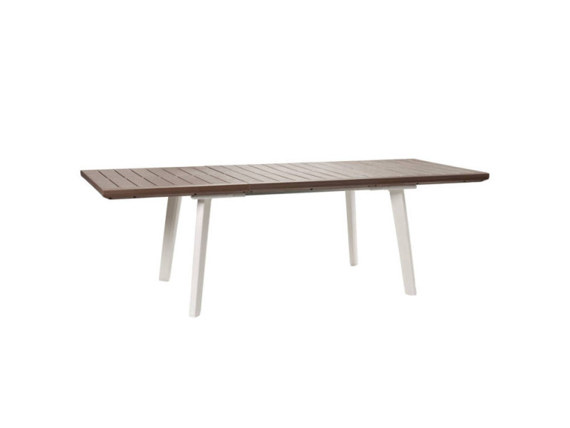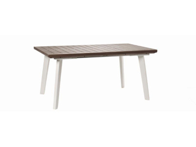 Rozkladací záhradný stôl pre 6 až 12 osôb. Plastový materiál odolný voči okolitým prírodným i mechanickým vplyvom. Farebná stálosť. Beznástrojové rozkladanie. Farba biela / cappuccino.