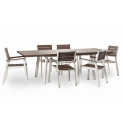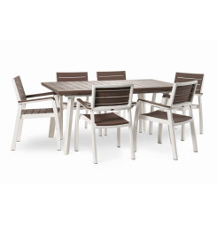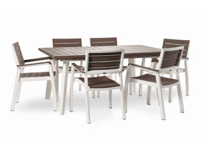 Stôl je vyrobený z polypropylénovej živice, ktorá svojou štruktúrou pripomína prírodné drevo. Použitý materiál navyše nábytku prepožičiava extrémnu odolnosť voči poveternostným vplyvom, UV žiareniu aj proti mechanickému a inému opotrebeniu, takže vám bude slúžiť spoľahlivo a po dlhú dobu. Vzhľadom na ochranu pred UV žiarením farba stola nevybledne ani na ostrom slnku.