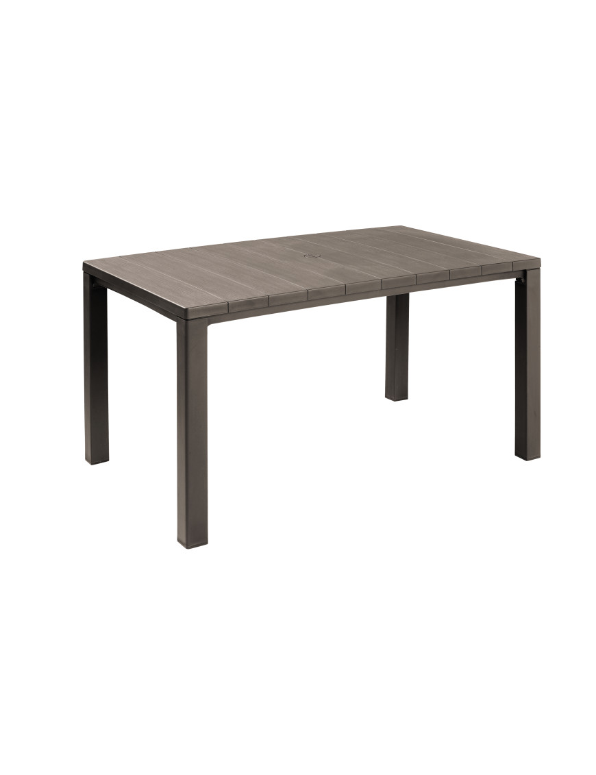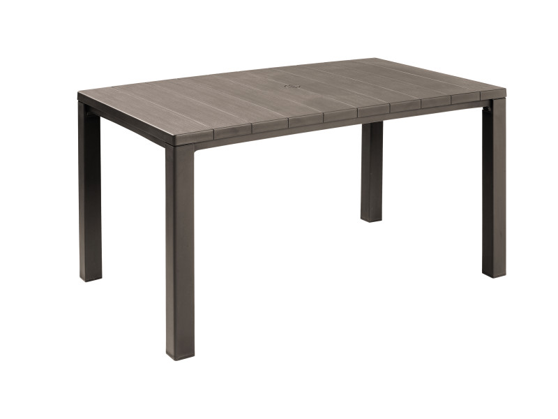 Záhradný stôl do klasického i moderného exteriéru, jednoduché zostavenie i údržba. Dizajn imituje drevo, odolnosť proti extrémnym vplyvom počasia, UV žiareniu, hnilobe a opotrebeniu aj výnimočná stálosť farieb, polypropylénová živica. Cappuccinová farba.