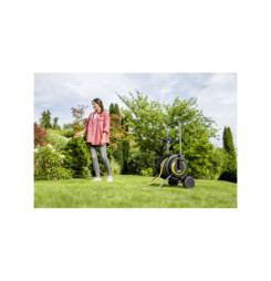 Hadicový vozík KÄRCHER HT 3.20 Set je praktický nástroj pre zalievanie záhrady, vybavený 20 m hadicou a ergonomickou výškovo nastaviteľnou rukoväťou. S jeho extra širokou základňou a robustným dizajnom ponúka vysokú stabilitu a pohodlné uskladnenie hadice. Praktický držiak na dýzy, odolnosť voči UV žiareniu a mrazu a jednoduché navíjanie hadice prispievajú k jeho funkcionalite. Set obsahuje všetky potrebné komponenty a je dodávaný s 5-ročnou zárukou, čím zaručuje kvalitu a spoľahlivosť.