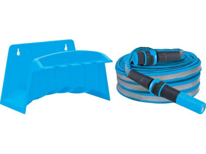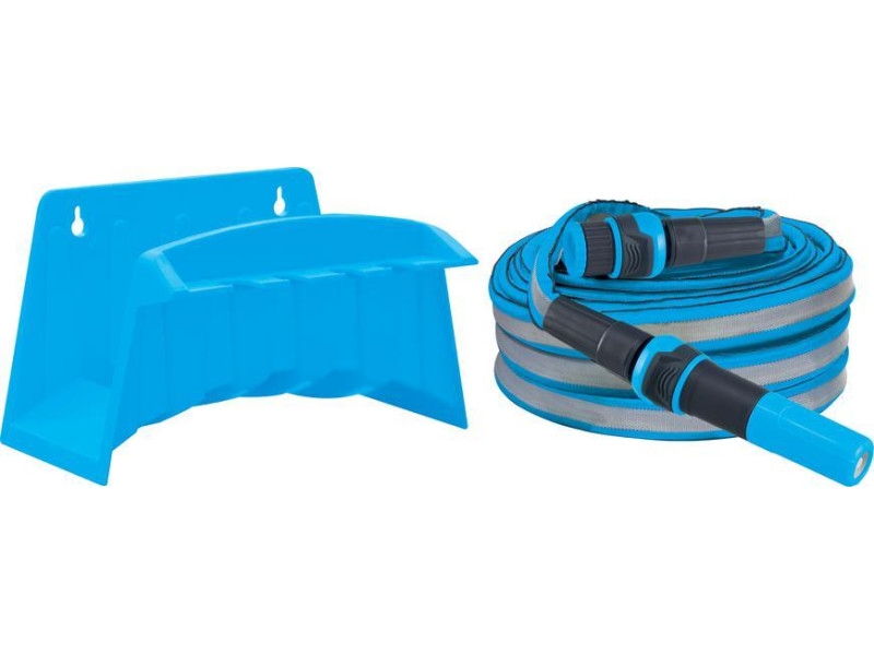 Praktický set hadice s dýzou a držiakom AQUACRAFT® 870101 ušetrí miesto na vašej záhrade. Set obsahuje textilnú plochú hadicu s dĺžkou 10 metrov, dýzu so 2 vzormi a držiak na stenu s priestorom na príslušenstvo.